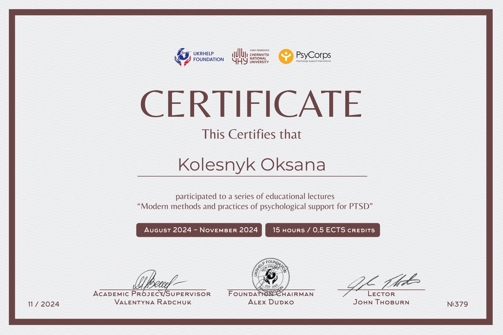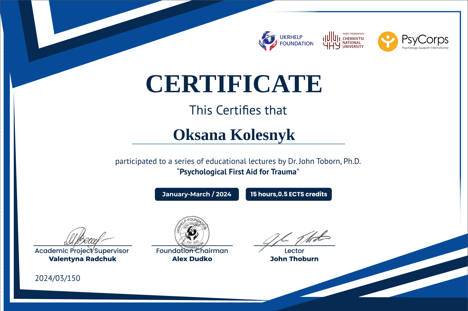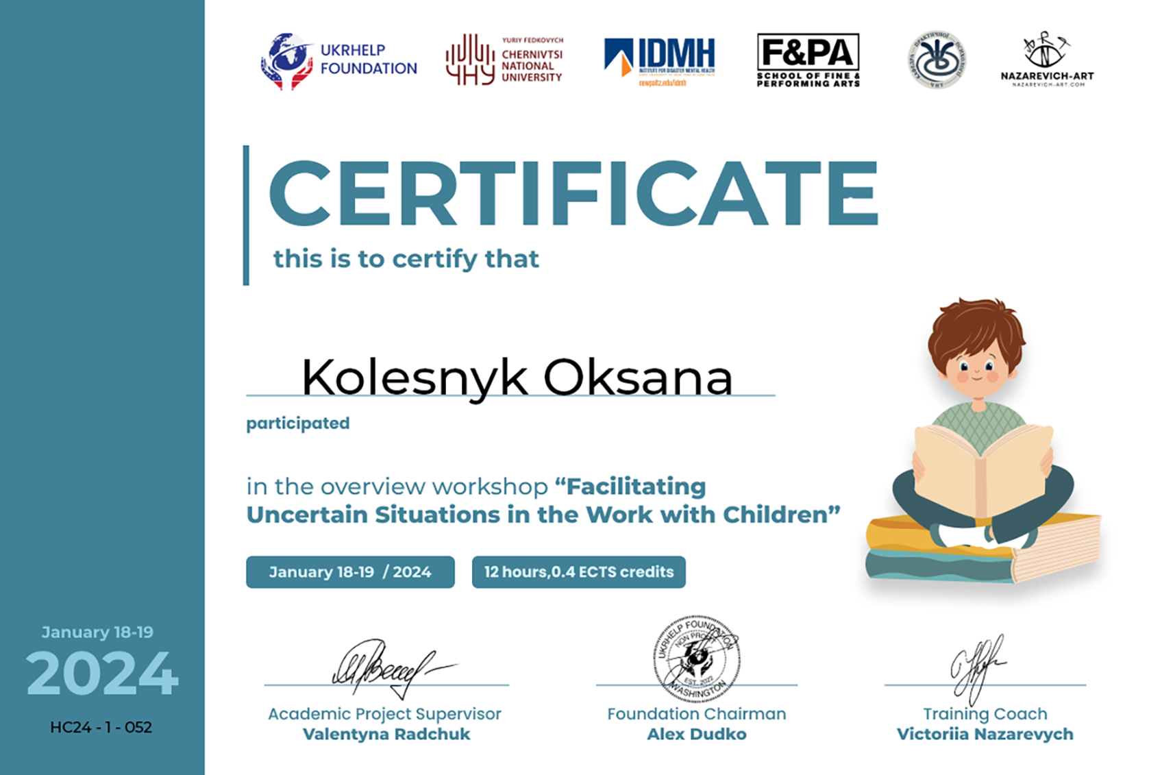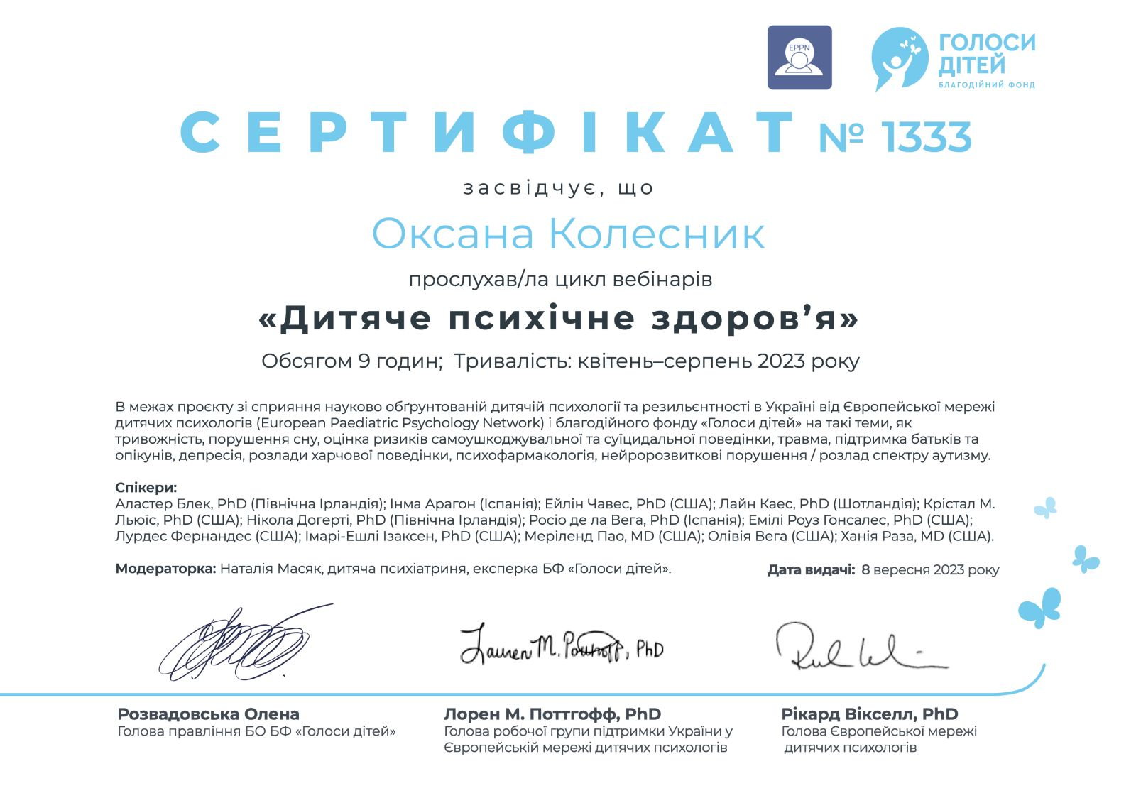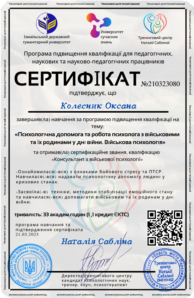 • експертка з психосоціальної підтримки дітей і дорослих